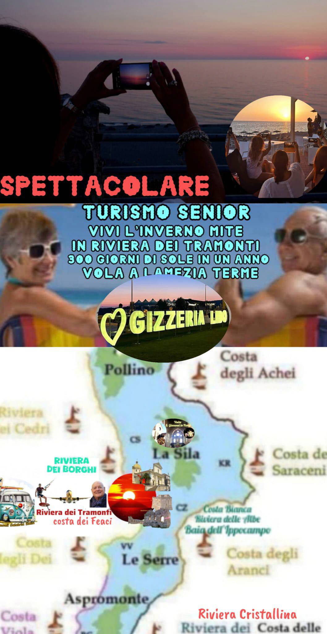 | RIVIERA DEI TRAMONTI - CALABRIA- LAMEZIA AIRPORT "300 giorni di sole in un anno ":la Riviera dei tramonti è clima e mare caldo in Estate; primavere temperate, inverni miti con sole che scalda nelle ore centrali del giorno mentre in Nord Europa c'è mare e clima freddo e in centro Europa c'è clima freddo e non c'è il mare. Al mattino ammiri il Sole che sorge sullo Jonio a 30 km dal mar Tirreno dove le sere ammiri fantastici tramonti con Stromboli,Isole Eolie e anche Etna. L'istmo dei due mari è perla della Riviera " L' ISTMO PIU BELLO DEL MONDO "Alba e Tramonti in 30 Km ". Dalla Riviera raggiungi le piste da sci in 100 minuti max di auto (Camigliatello, Lorica, Gambarie). RIVIERA TRAMONTI PORTA D'EUROPA : "Mare,Monti,Terme,Natura". LA RIVIERA DEI TRAMONTI accoglie il TURISMO SENIOR , Italiani ed Europei che con max 3 ore di volo raggiungono LAMEZIA TERME. Vivi in Riviera, mare, terme, monti, alba, tramonti a due passi dall'Aeroporto e a 2/3 ore da casa tua. (continua a leggere) | ||||||
